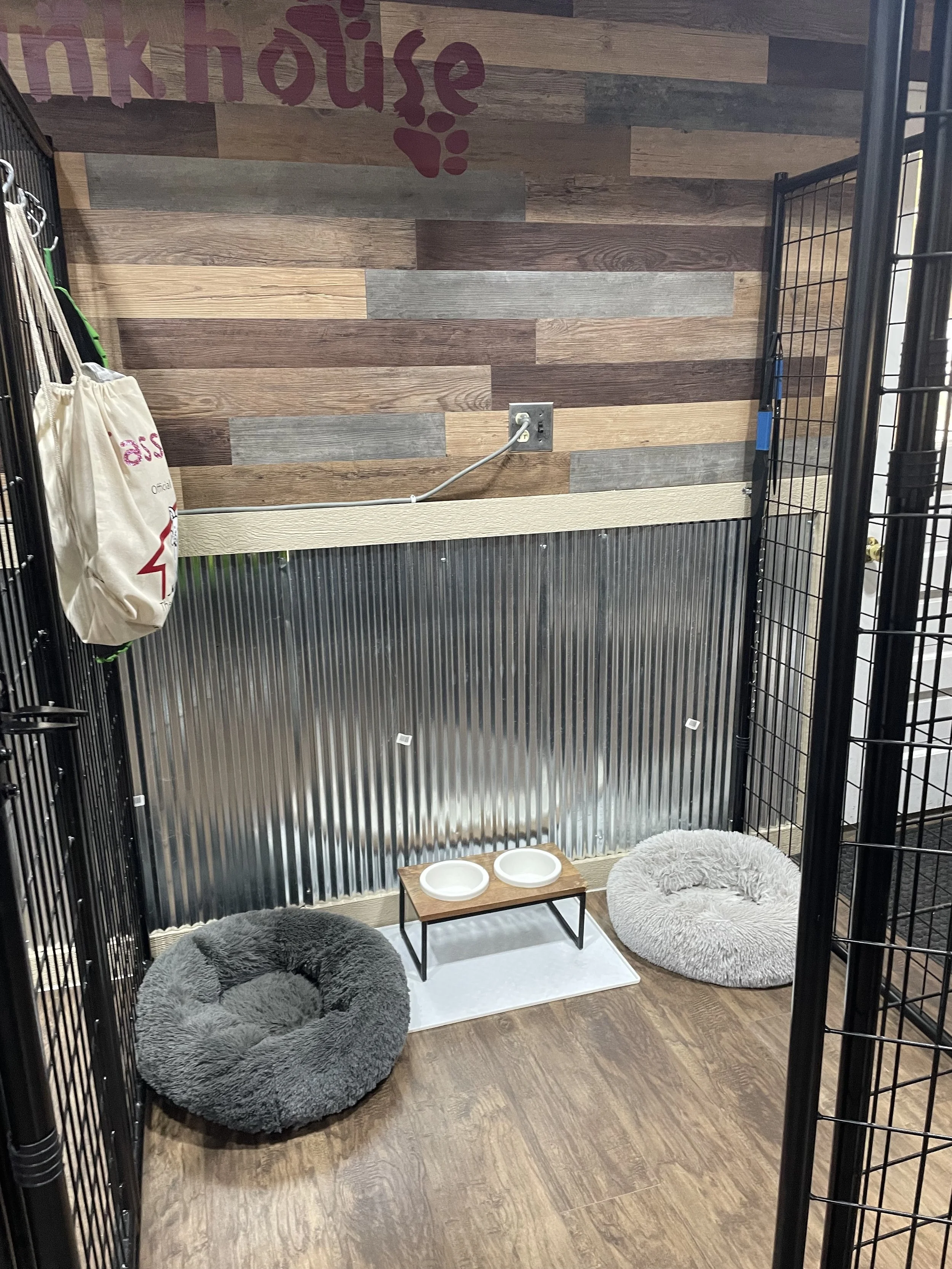 The Bunkhouse: This includes two climate control 5 x 5 kennels in our home. They are primarily used for feeding and sleeping as daytime activities are all together living as one big pack. *They can be opened up to make one big 5 x 10 area if you have 2 more more furry family members that will be boarding together.